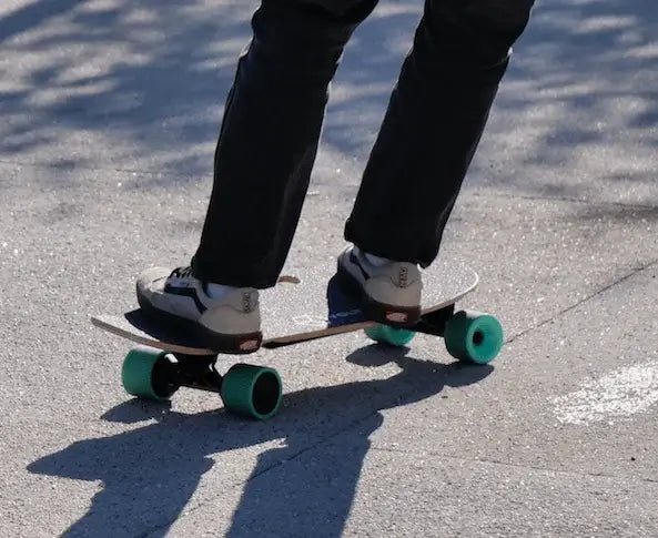 The SLAB 34 PISTACCHIO – VOLTA ELECTRIC SKATEBOARD from the Retrofish E-Skate Series blends old-school surfboard inspiration with serious electric power. With its elegant fishtail shape, retro colourway, and high-performance drivetrain, the Slab is designed for riders who want style, power, and pure fun in one board.