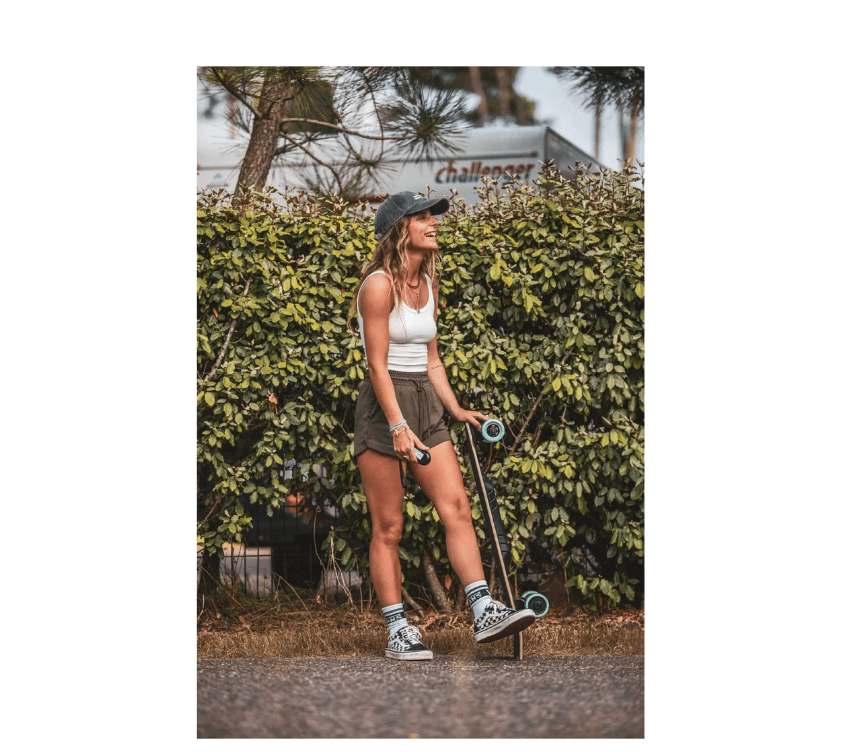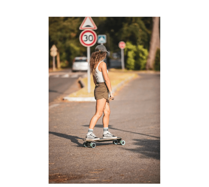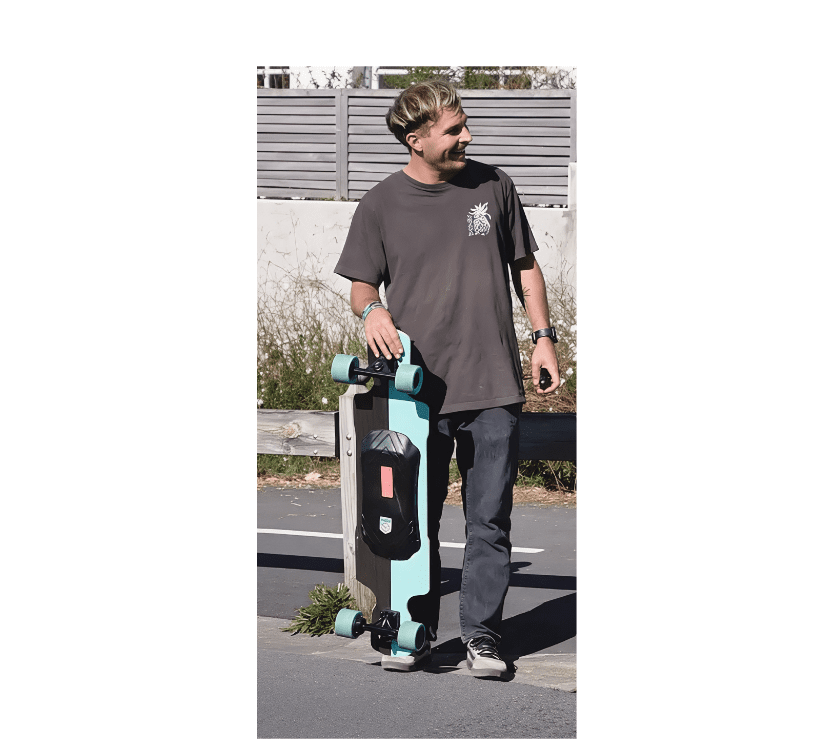 With its reversible twintip deck design, this e-skate allows you to ride confidently in both directions while maintaining perfect balance and stability. Capable of reaching speeds of up to 25 km/h, the Mack is powered by dual 400W brushless in-wheel motors, providing strong acceleration, excellent grip, and a smooth, responsive ride.