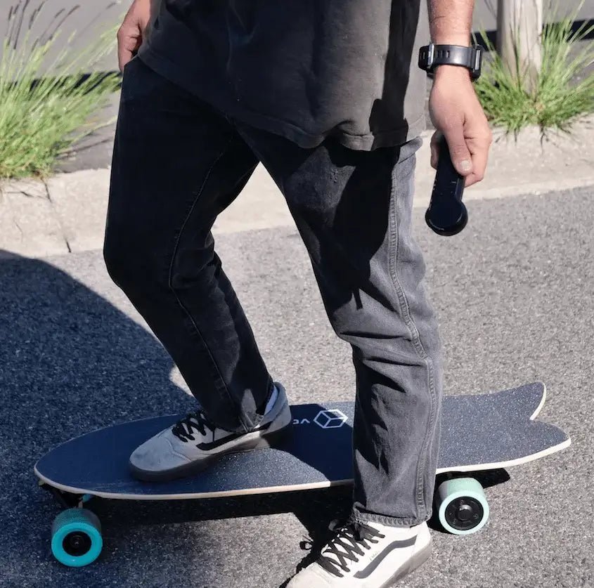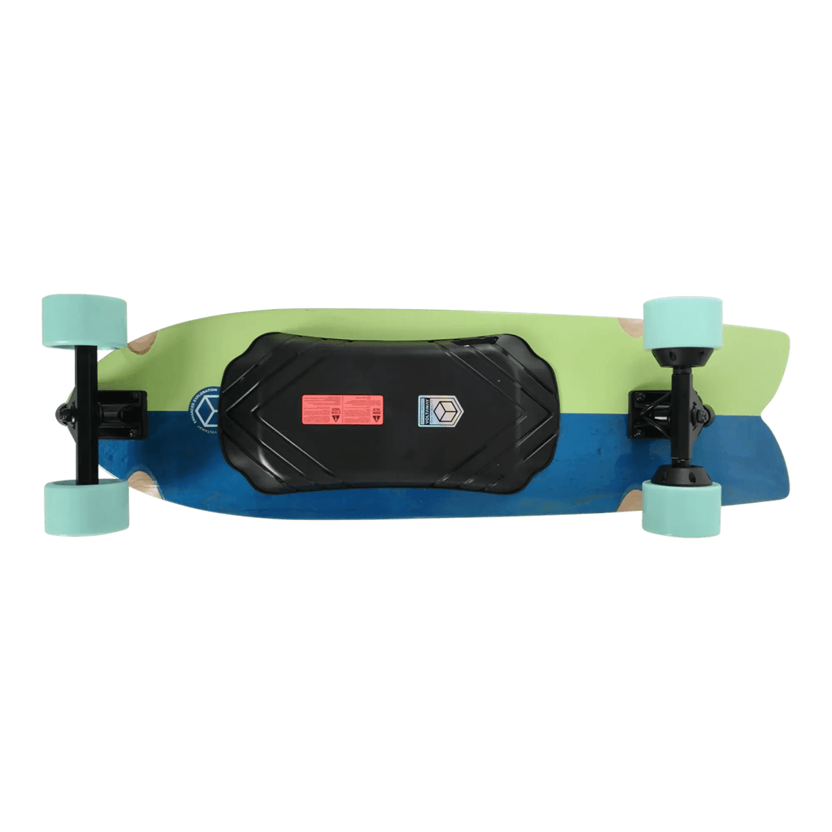 The SLAB 34 AQUA – VOLTA ELECTRIC SKATEBOARD from the Retrofish E-Skate Series is a powerful, stylish, and surf-inspired electric skateboard that blends old-school design with modern electric performance. Inspired by classic surfboard shapes, the Slab delivers a smooth carving feel while packing enough power to seriously impress.